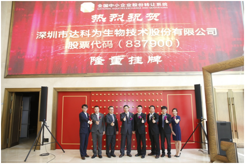 今天,達科為股票(代碼: 837900)正式登陸新三板,在萬眾矚目下,我們一起期待公司在生物行業(yè)中轟轟烈烈的新征程!同事們,我們一起加油!